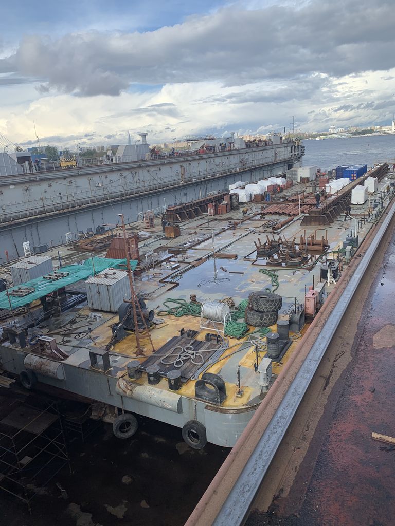 Подобной баржи на Балтике не было, поэтому было принято решение по перегону имеющейся баржи из Каспийского моря в Балтийское море, по внутренним водным путям. Ширина баржи превышала габаритные проходные лимиты Волго-Балтийского канала. Поэтому в Астрахани ее разделили вдоль, на две части, шириной по 15 метров и они были успешно отбуксированы в Санкт-Петербург.